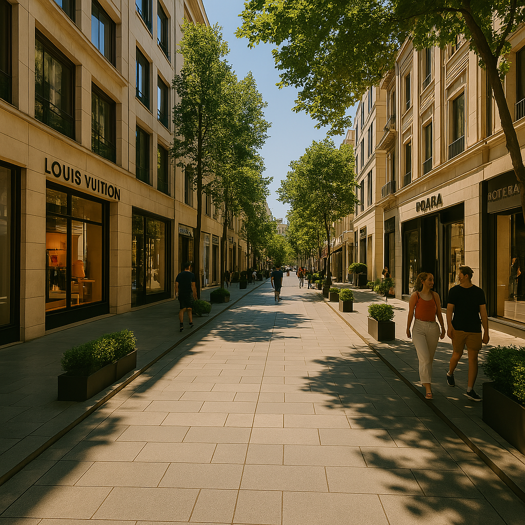 – **مراکز خرید لوکس:** این خیابان میزبان برندهای معروف جهانی مانند **لویی ویتون، گوچی، پرادا و شانل** است.